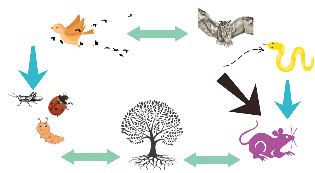 這個例子展示了生態系統中所有生物之間的緊密關係。每個生物在鏈中扮演著關鍵角色,從茶樹為昆蟲提供食物,到食物鏈中的鳥類捕食昆蟲,再到較大的控制鼠類族群的掠食者。如果鏈中的一個環節被破壞,整個生態系統將受到影響。茶樹生態系統展示了每個生物,無論多小,都對環境的整體平衡和健康作出貢獻。