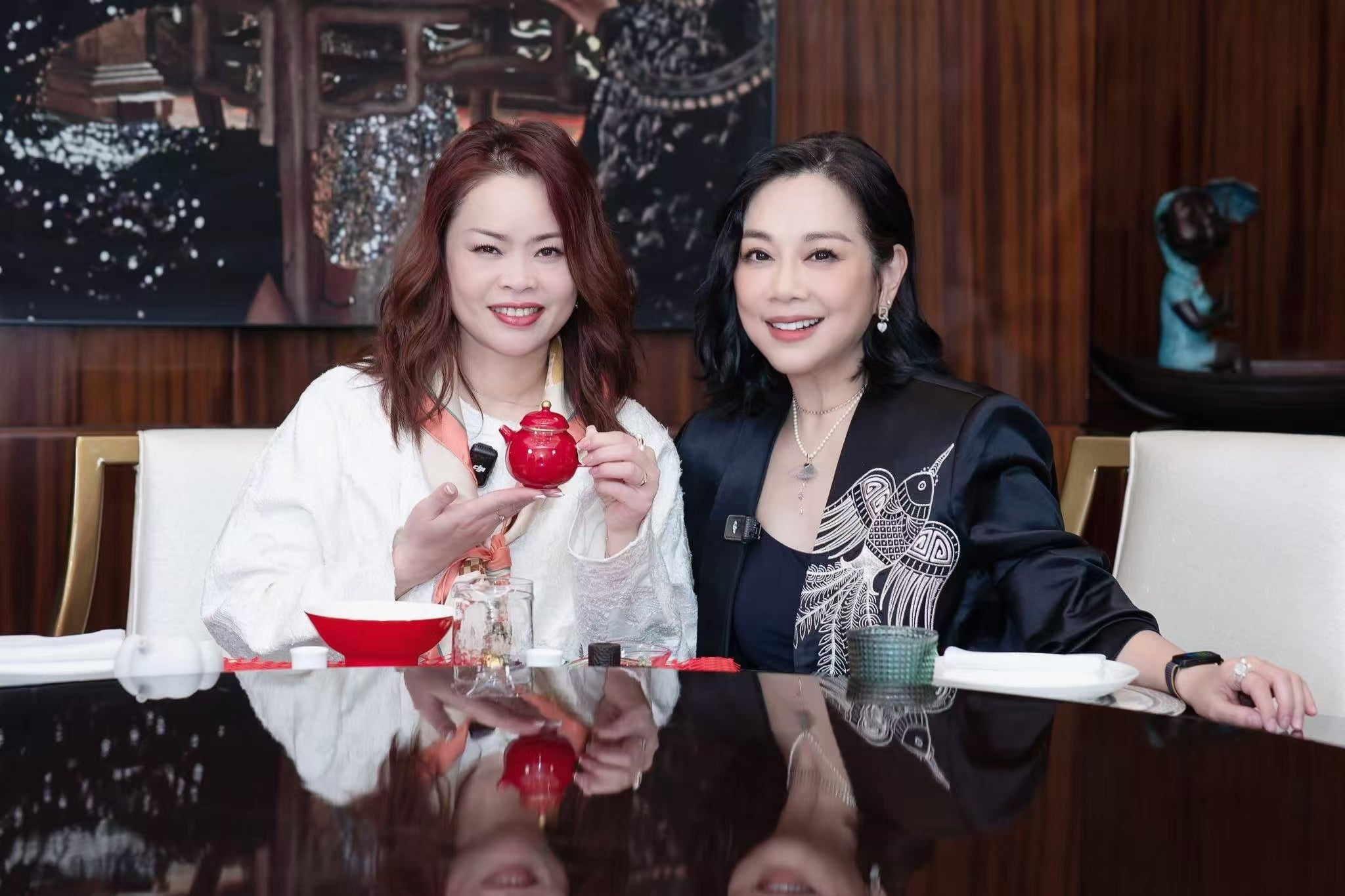 與香港女演員陳松伶一起泡茶